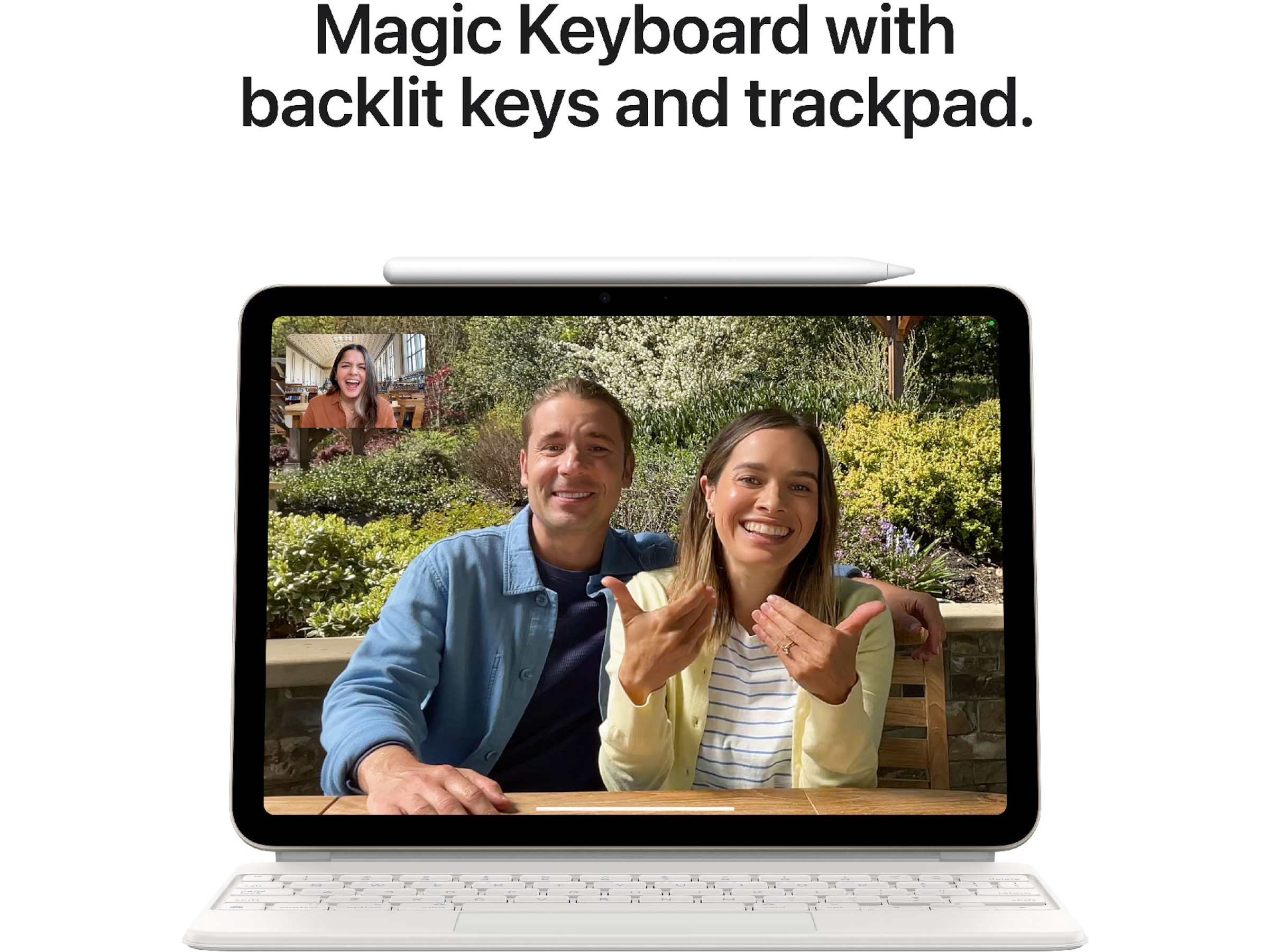 Apple Pencil Pro förvandlar iPad Air till en fantastisk canvas och världens bästa anteckningsblock. Apple Pencil (USB-C) är också kompatibel med iPad Air. Magic Keyboard erbjuder bekväma skrivupplevelser med en inbyggd styrplatta och fungerar som ett skyddande skydd för din iPad resten av tiden. Tillbehör säljs separat.