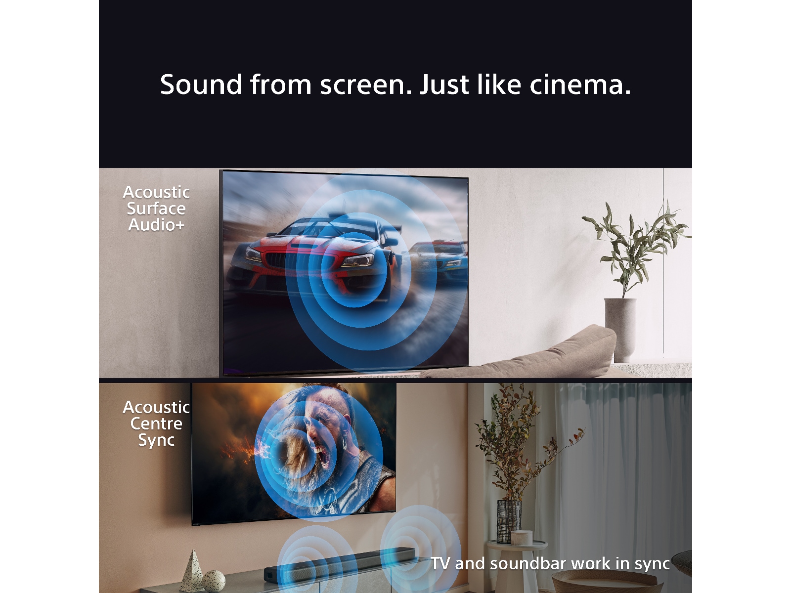 | Ytterligare funktioner | Inbyggd mikrofonomkopplare, Crystal Clear, Bass Reflex Speaker System, ARC (Audio Return Channel), Acoustic Surface Audio + teknologi, Kompensering för användarposition, Enhanced Audio Return Channel (eARC), Room Compensation, 360 spatiell ljudmappning, Voice Zoom 3, Akustisk mittsynk, Ljudpositionerings-diskanthögtalare |