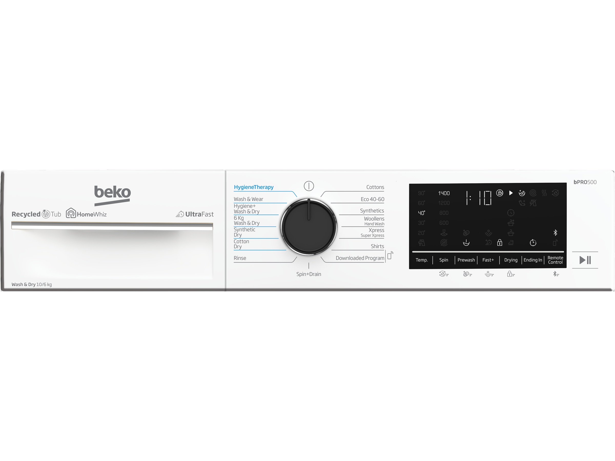 Beko UltraFast är ett riktigt snabbt program som kan tvätta och torka 6 kg kläder på bara 3 timmar och 33 minuter. Med hjälp av en förbättrad uppvärmning, en kraftfull fläkt och en specialdesignad värmeväxlare garanterar detta att du är redo på nolltid. Den klarar till och med att tvätta och torka en full last men ändå behålla energinivå A.