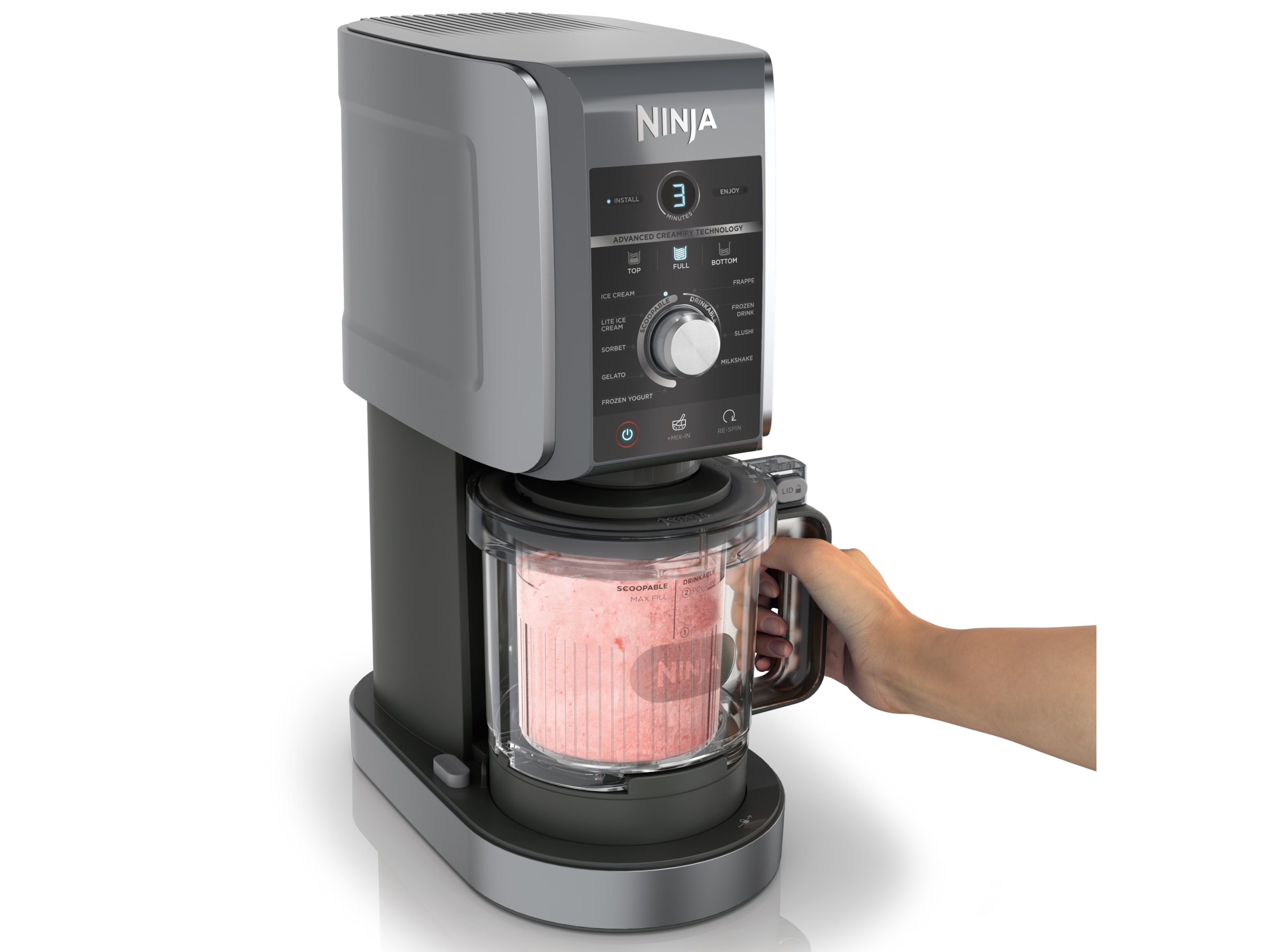 Njut av CREAMi-klassiker som glass, gelato och Mix-Ins. Eller utforska nya och spännande funktioner som Slushi, Frappe, Frozen Yogurt och Frozen Drink. Nu med en 50 %* större kapacitet finns det ännu mer att älska med CREAMi. Är du osäker på var du ska börja? CREAMi receptguide har allt du behöver för att komma igång med att göra drinkar och desserter. Och med kraften i dina händer kan du när som helst njuta av lågsockerrika, veganska, proteinrika eller mjölkfria favoriter.