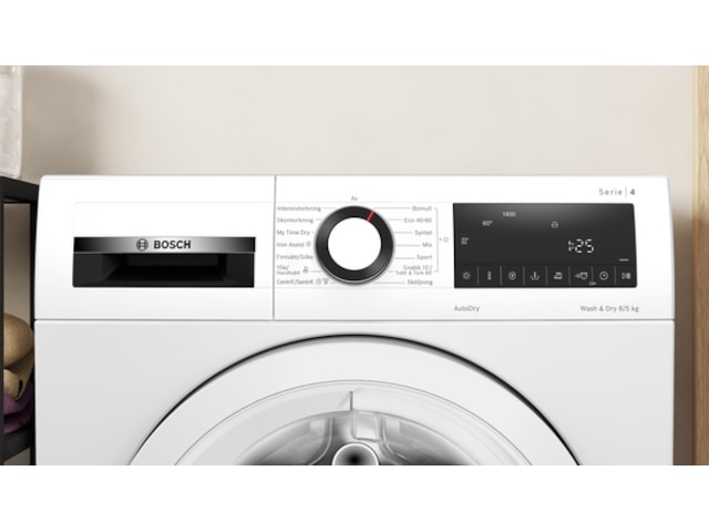 Finns det plats för en torktumlare? Inga problem. De kombinerade tvättmaskinerna och torktumlarna med AutoDry-funktionen torkar lika effektivt som de tvättar. AutoDry känner automatiskt av när tvätten är torr, tack vare kontinuerlig fuktmätning som säkerställer skonsam och effektiv torkning. Perfekt anpassade Wash&Dry-program för olika textilier säkerställer fläckfria resultat. Slutligen finns en kombinerad tvättmaskin och torktumlare som ger dig kläder som du bara måste ta på dig, direkt ur maskinen. Tvätta och torka upp till fem kilo på en gång.