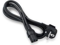Svart strömkabel på 1,5 meter med jordad kontakt för anslutning av enheter som datorer, bildskärmar, projektorer och hushållsapparater.
