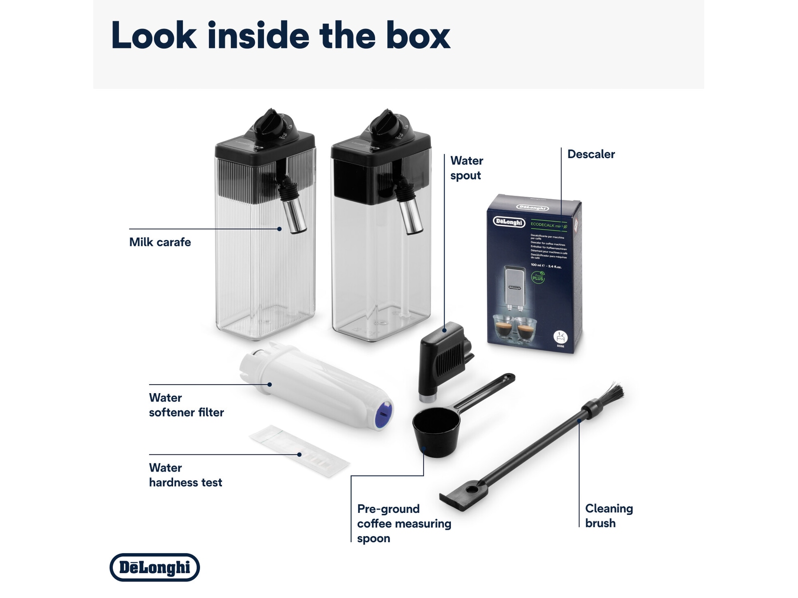 - Enkel rengöring tack vare automatisk rengöring med en knapptryckning och diskmaskinssäker mjölkkaraff