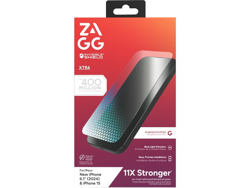 XTR4 is the strongest screen protector from ZAGG. It’s made with graphene and Hexiom2 technology, making it 11x stronger than traditional glass screen protection. It’s also our most technologically advanced screen protection with blue light filtration to improve eye comfort and sleep, anti-reflective technology for richer colors, and a dust-free installation process.