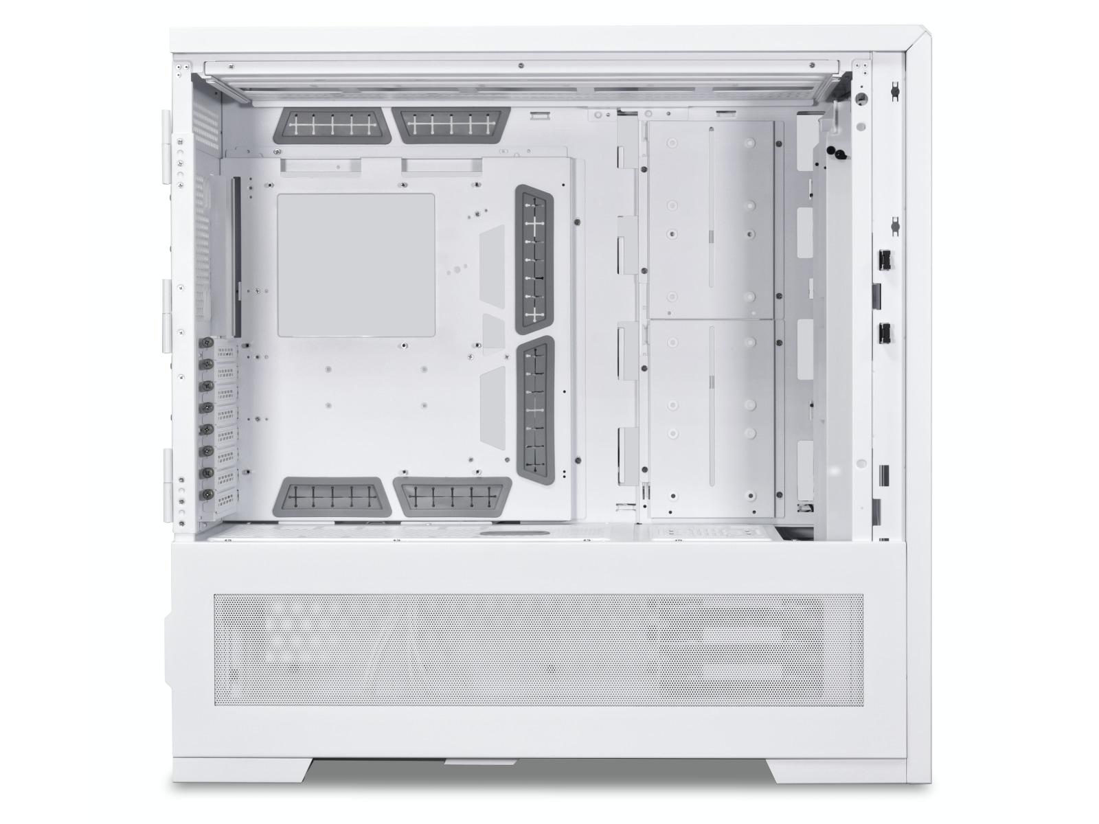 De verktygslösa SSD-brickorna bakom moderkortet förenklar monteringen av SSD:er.
