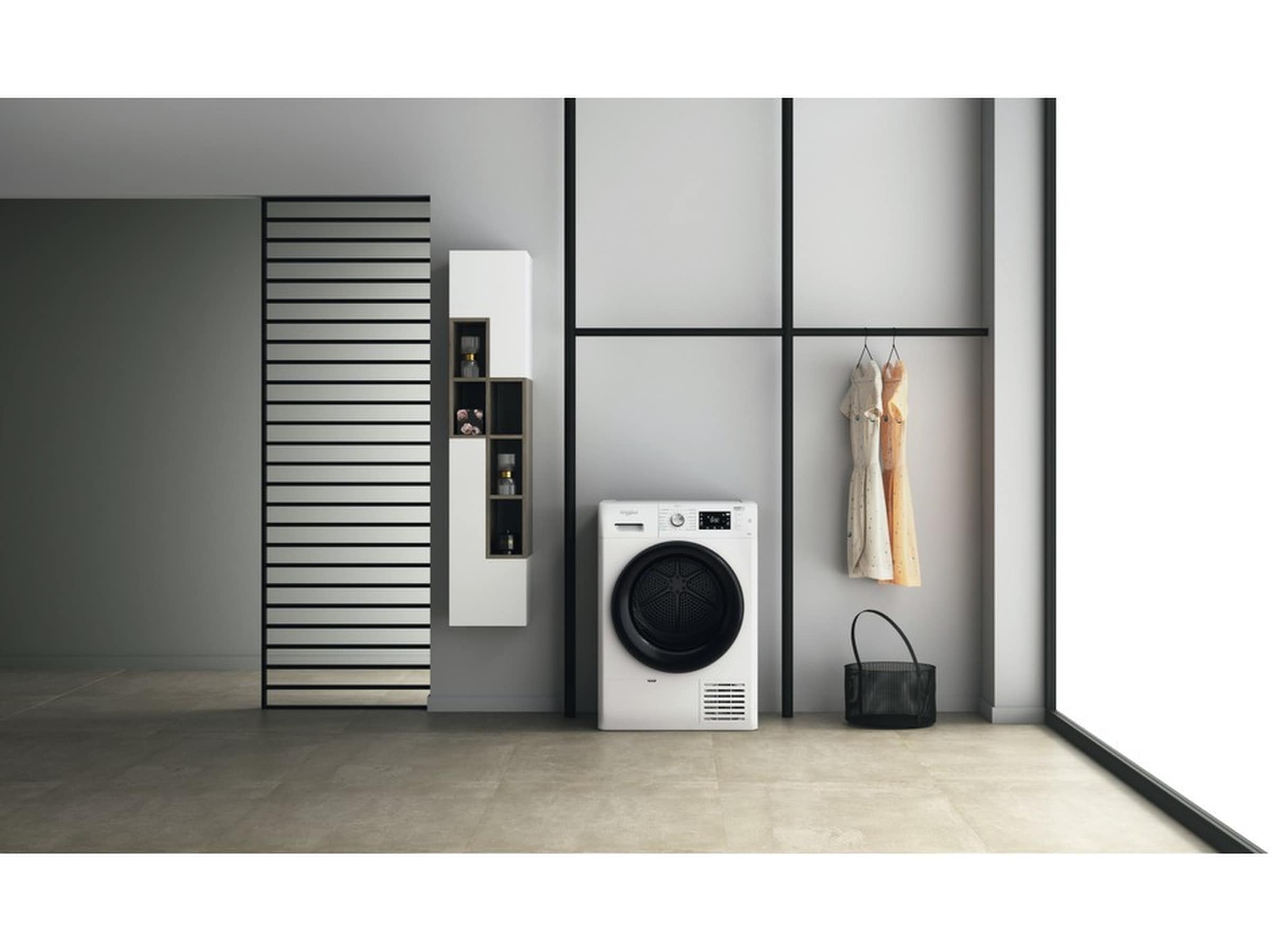 Whirlpool torktumlare med en modern design med en exklusiv lucka med glas.