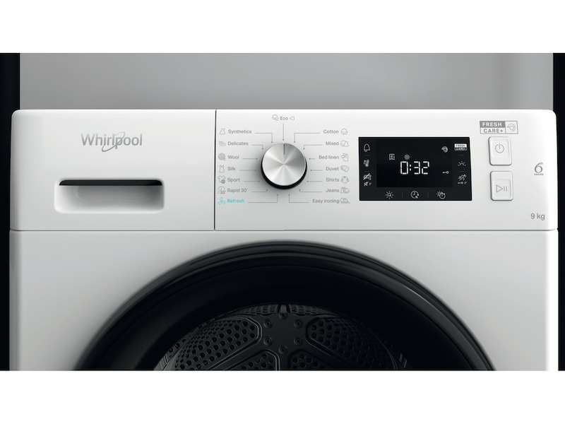 Med en enastående trumkapacitet på 9 kg erbjuder den här Whirlpool-torktumlaren allt utrymme du behöver för din tvätt.