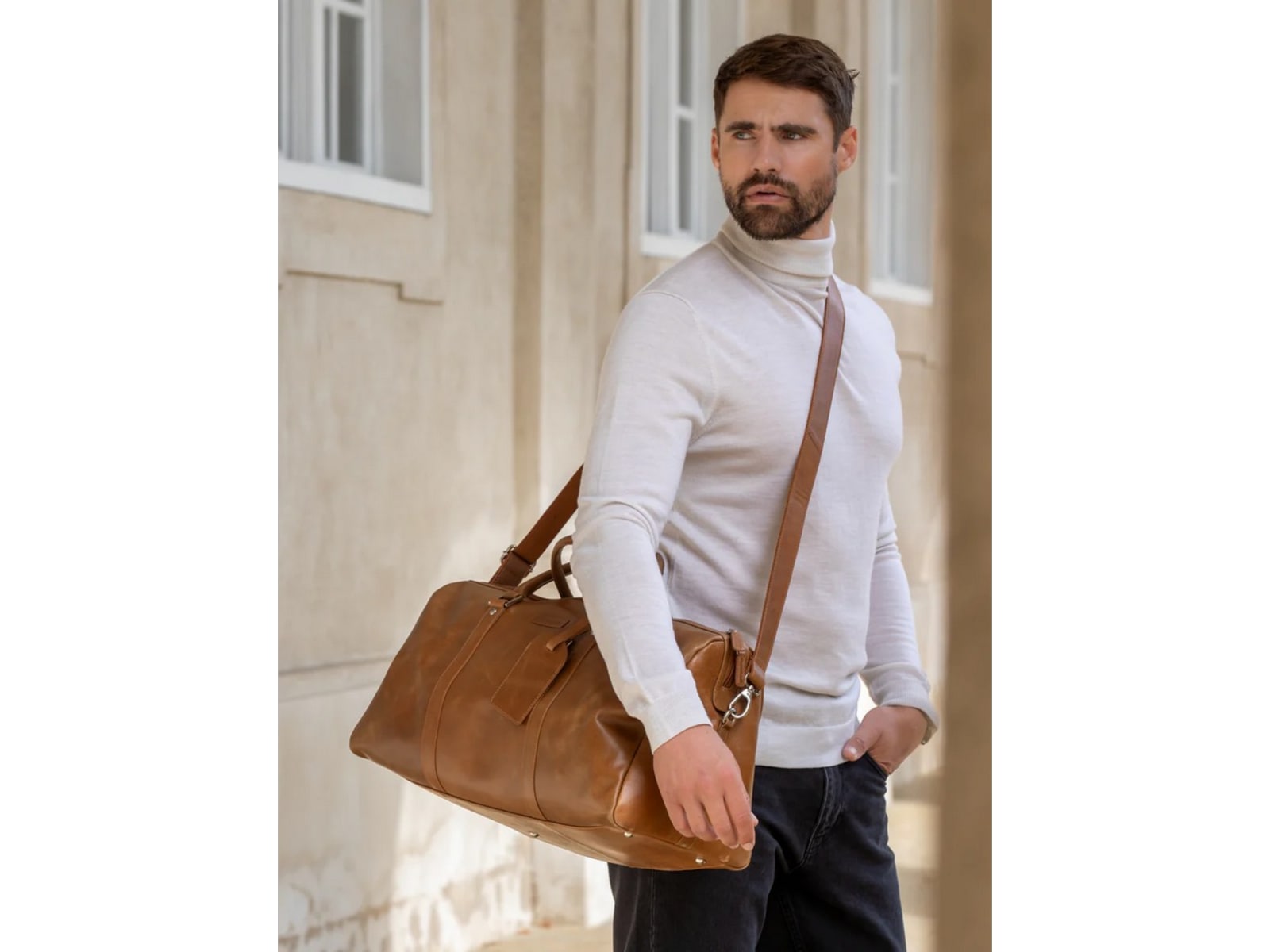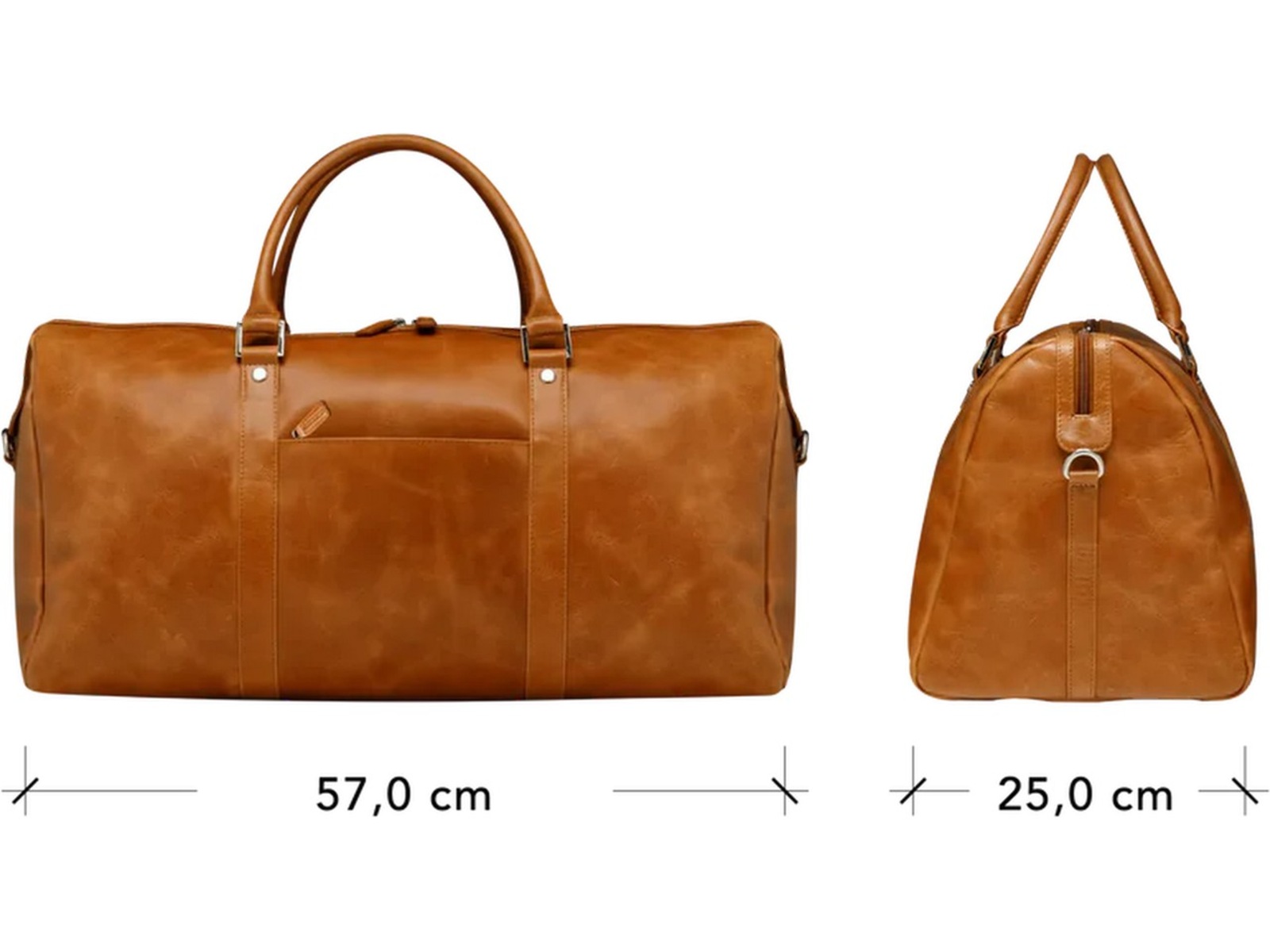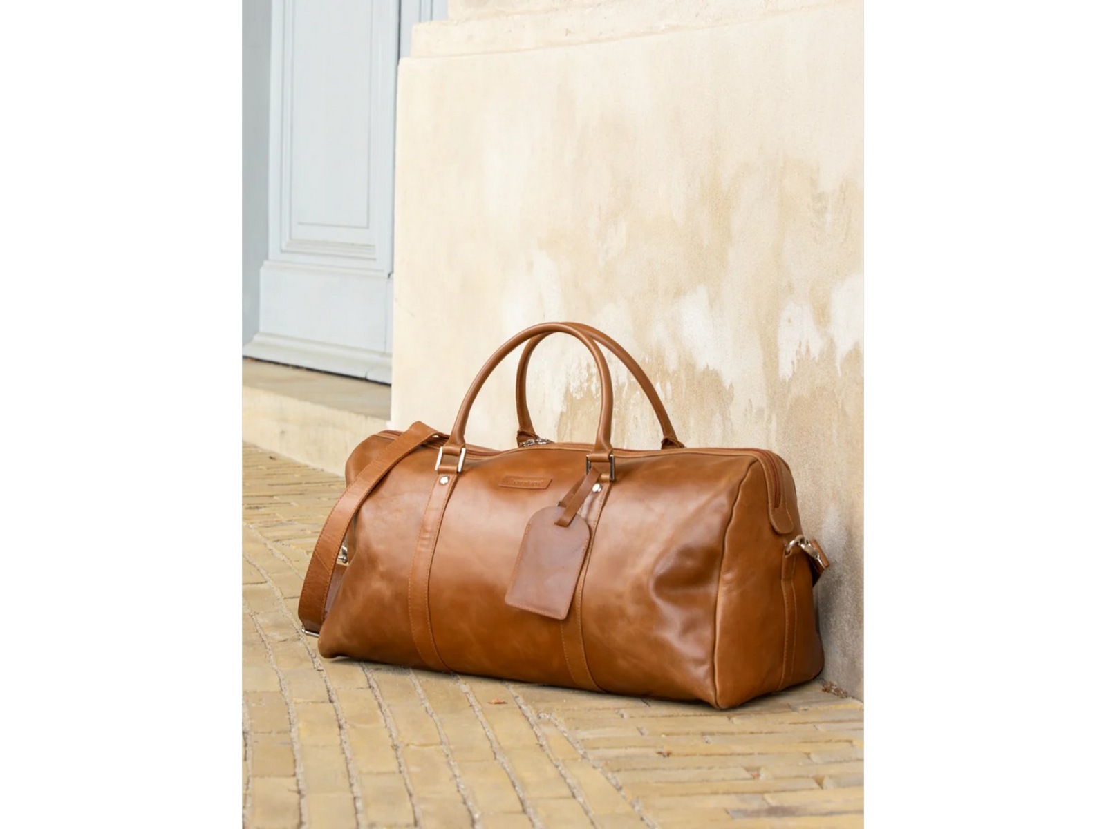- Two leather handles plus a removable and adjustable shoulder strap