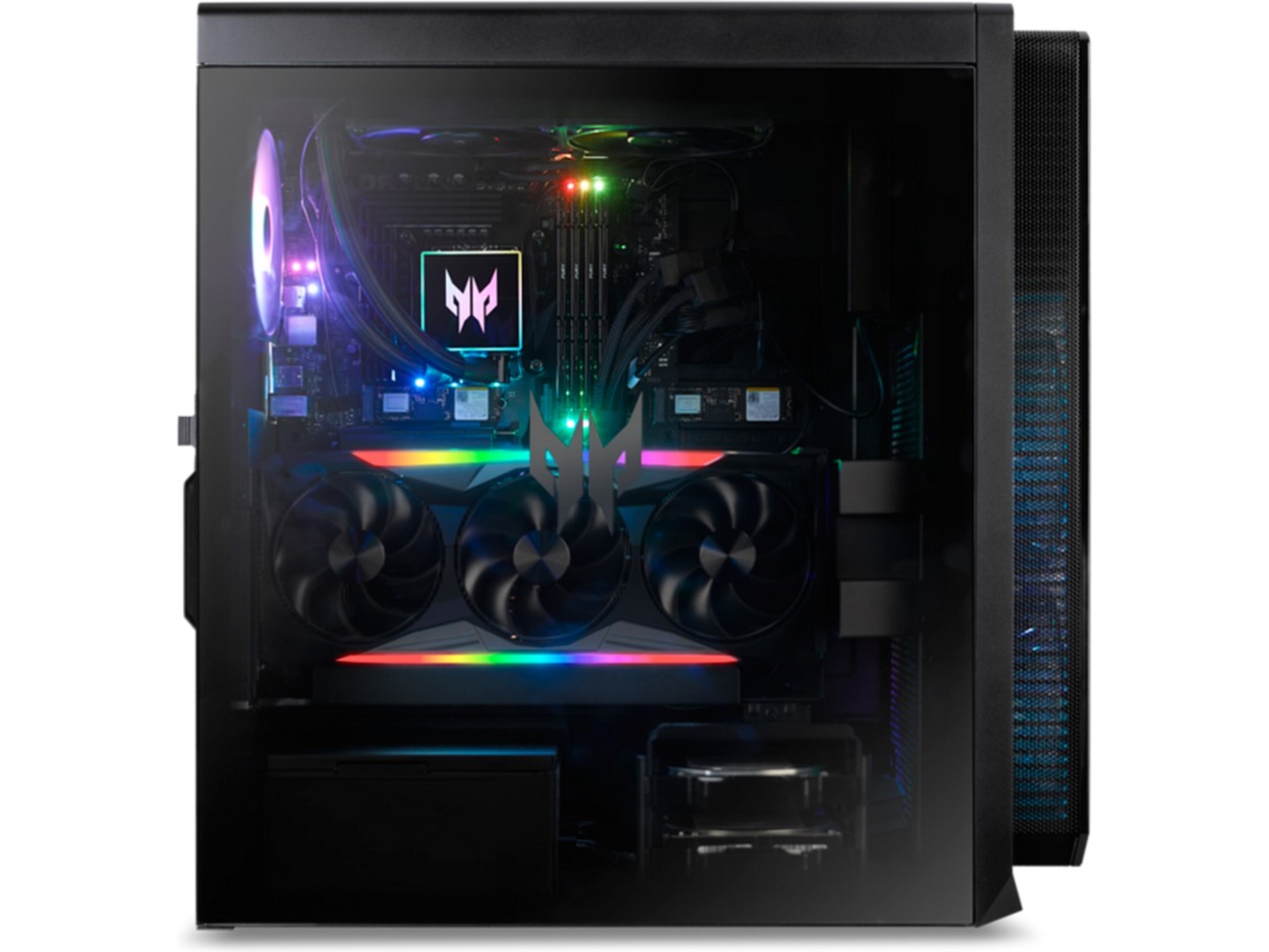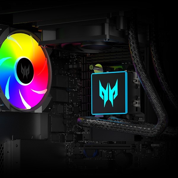 Håll ramarna höga och temperaturerna låga med de nya ARGB-infusionerade Predator FrostBlade™ 2.0-fläktarna, eller titta in i det skuggiga för att få en glimt av vår senaste AIO CPU-vätskekylare i aktion. Den är byggd av branschledande komponenter och inga detaljer har lämnats bort för att hålla temperaturen och bullernivåerna nere.