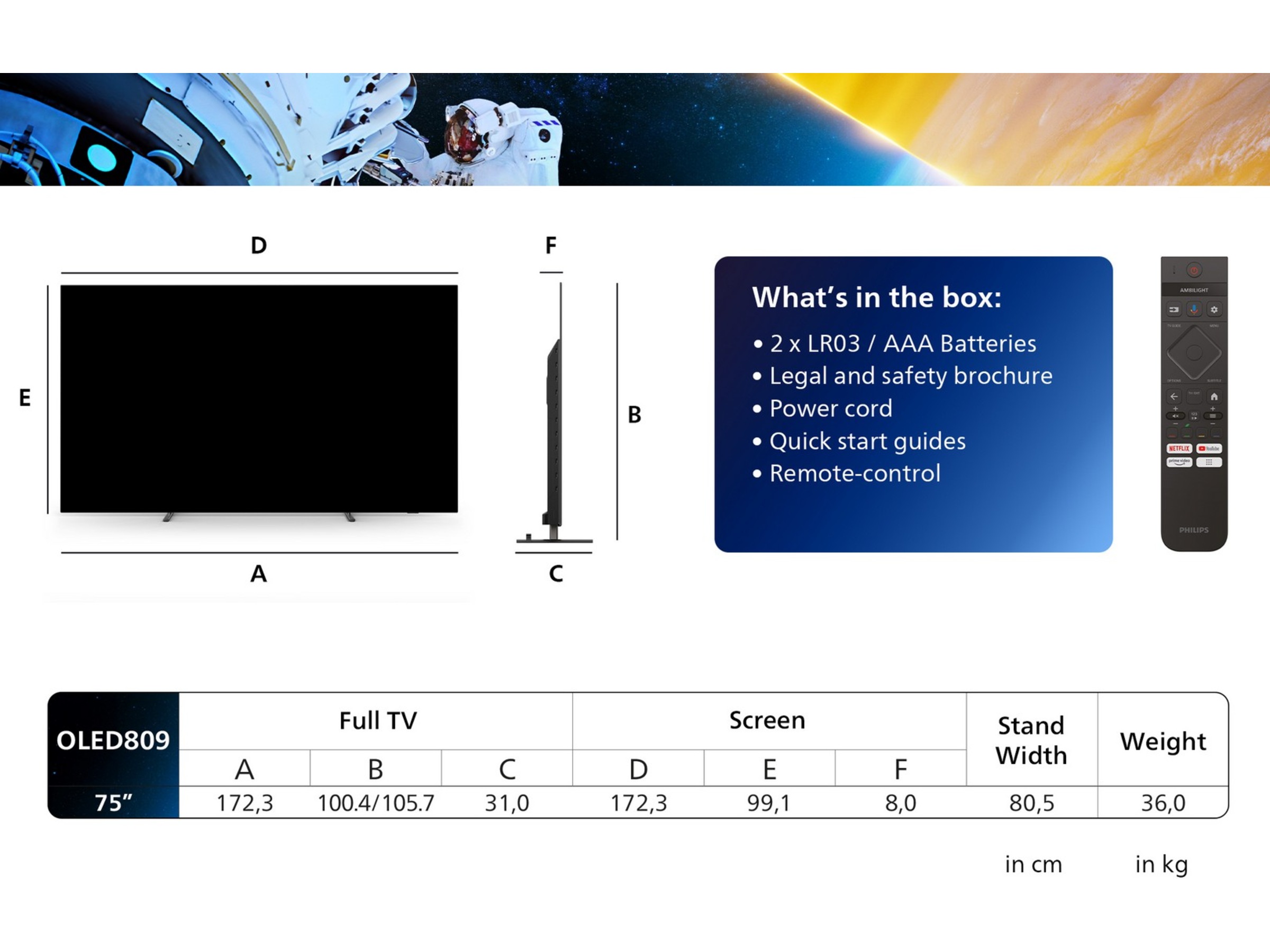 Nätaggregat, OLED-TV, Fjärrkontroll |