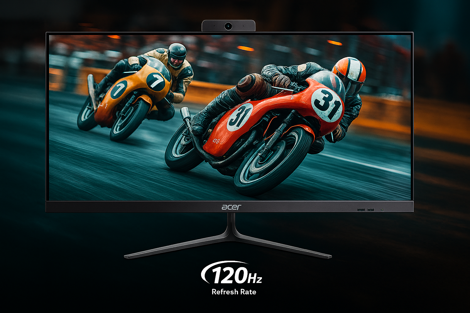 Aspire C27 allt-i-ett-dator har en 27-tums 1920 x 1080 FHD-skärm med en uppdateringsfrekvens på 120 Hz, som erbjuder breda betraktningsvinklar på 178° och Flicker-Free-teknik för minskad skärmflimmer.