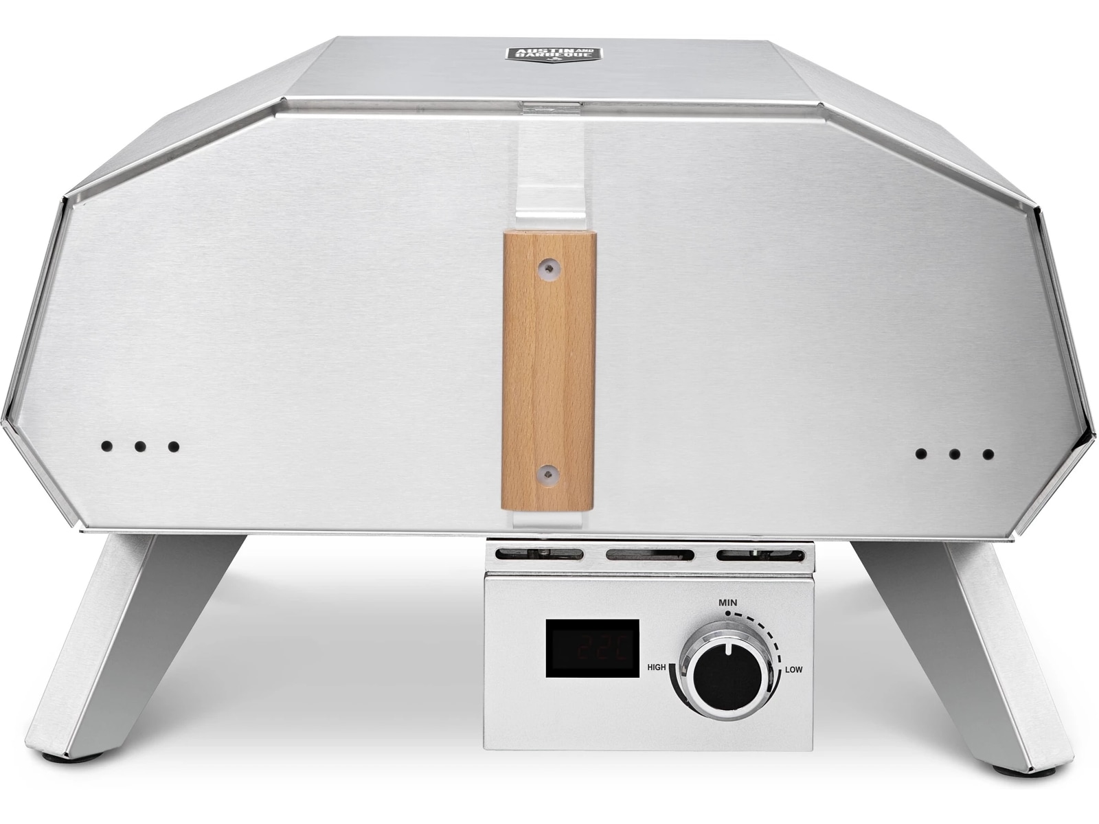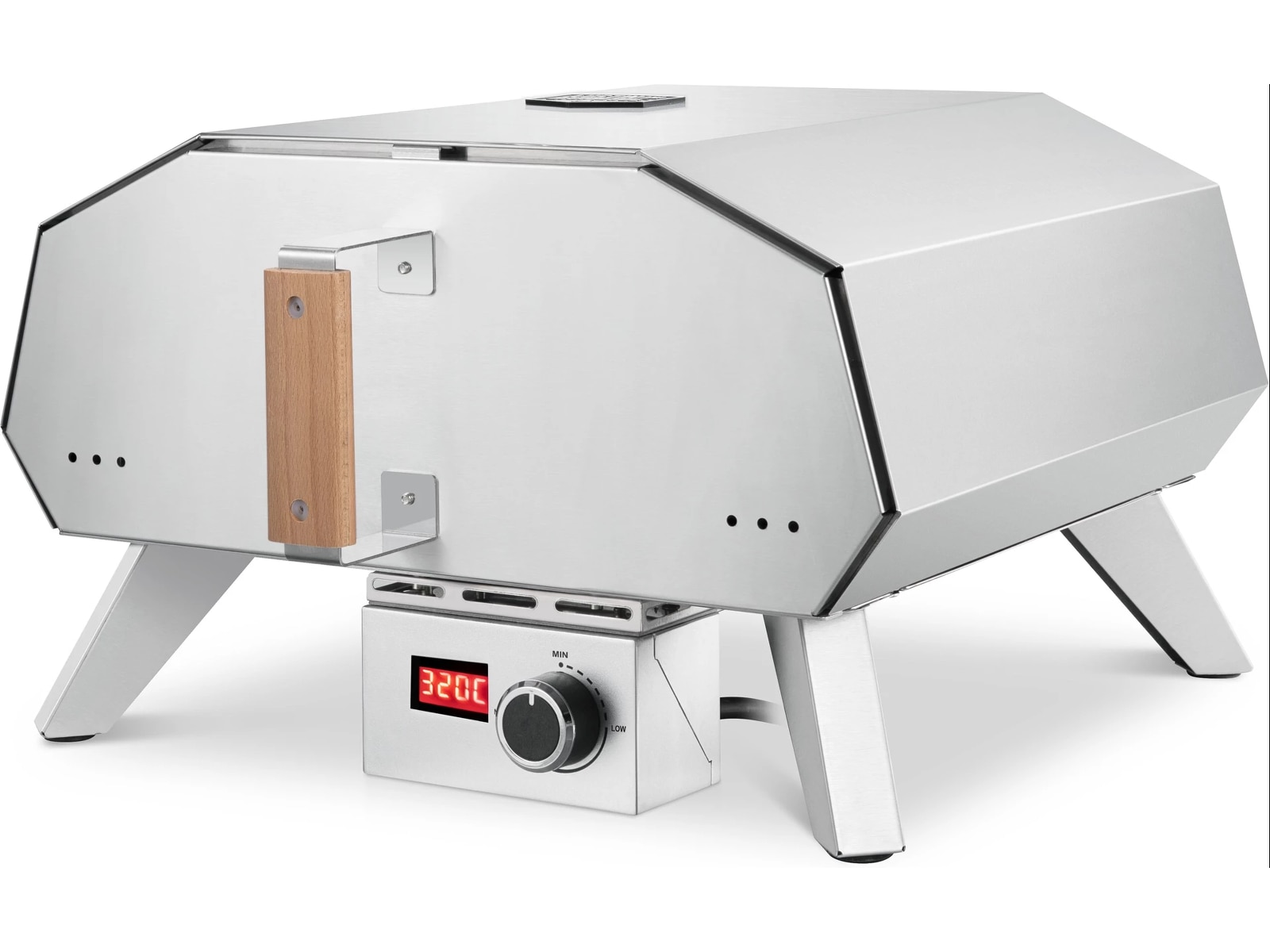 Den 12 tum elektriska pizzaugnen från Austin and Barbeque har en kompakt design och tar inte upp mer plats än nödvändigt. Den passar perfekt på balkongen eller terrassen och är enkel att ställa undan till nästa grillsäsong.