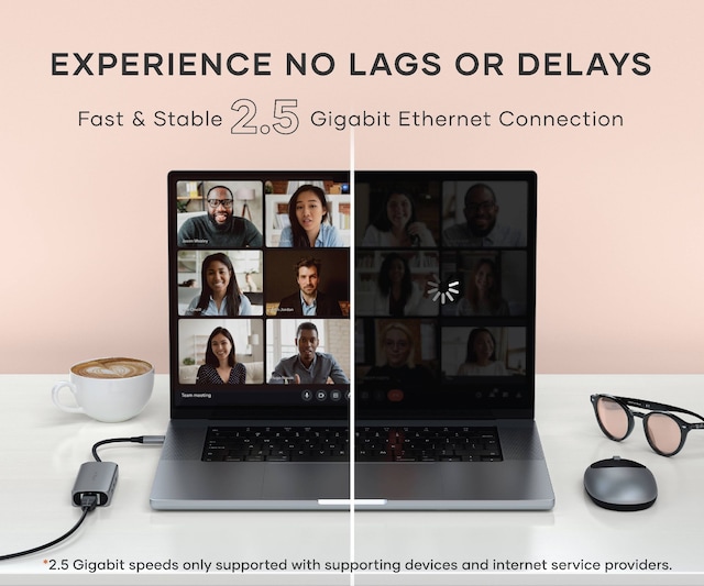 Sömlös hastighet. Överlägsen anslutning. Dubbla prestanda jämfört med traditionellt Gigabit Ethernet med Satechi USB-C 2.5 Gigabit Ethernet-adapter för snabbare nätverkshastigheter, snabbare filöverföringar och Ethernet-genomföring på datorer.