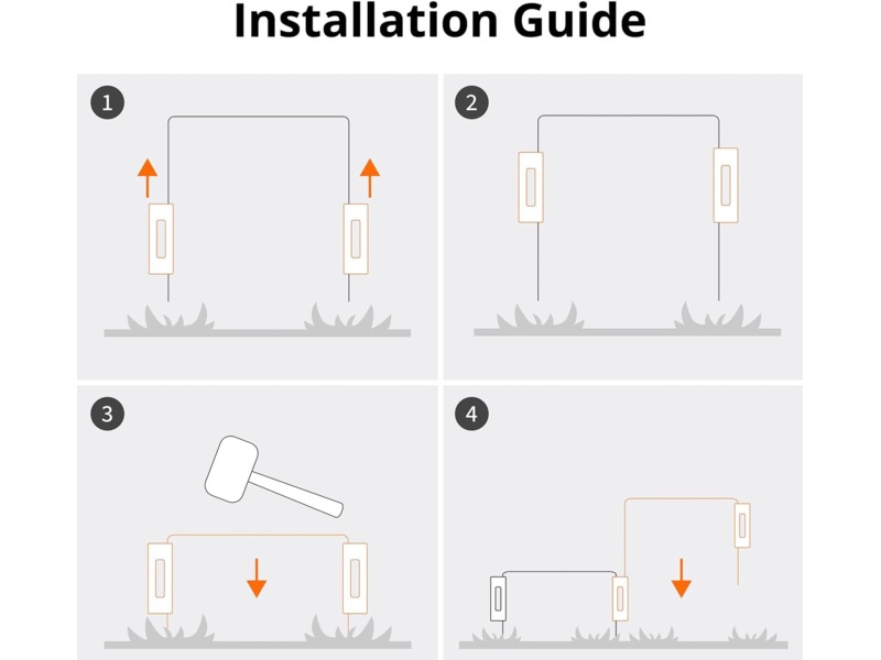 - Hur man installerar: Sätt ner stängselbågarna i marken för att bilda ett skyddande stängsel. Använd anslutningspanelerna för att säkra bågarna.