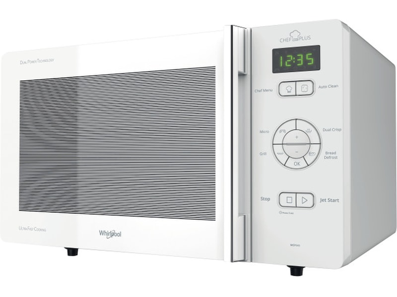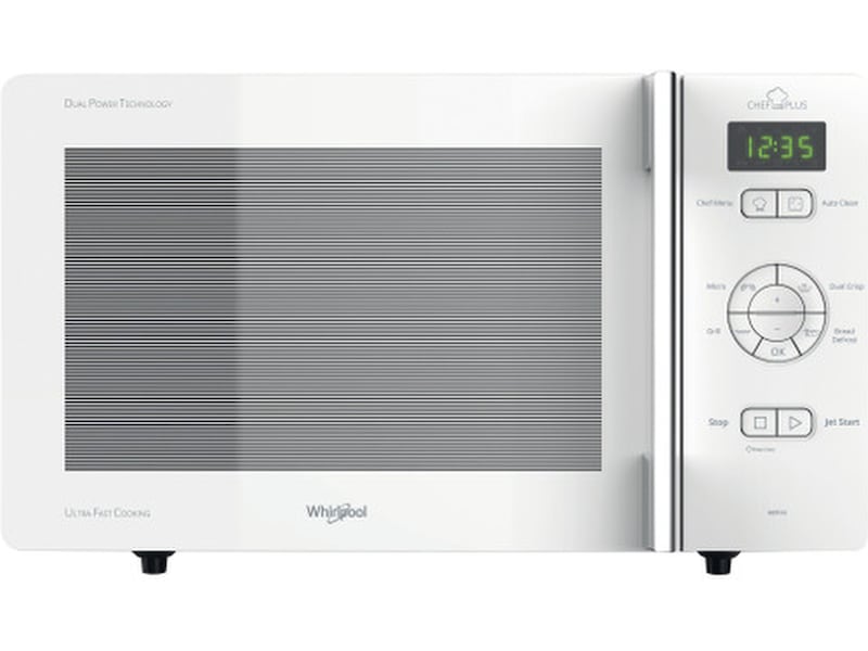 Denna fristående mikrovågsugn från Whirlpool har följande funktioner: Grillfunktion. Krispfunktion, för otroligt krispiga pajer, pizza och pajer.