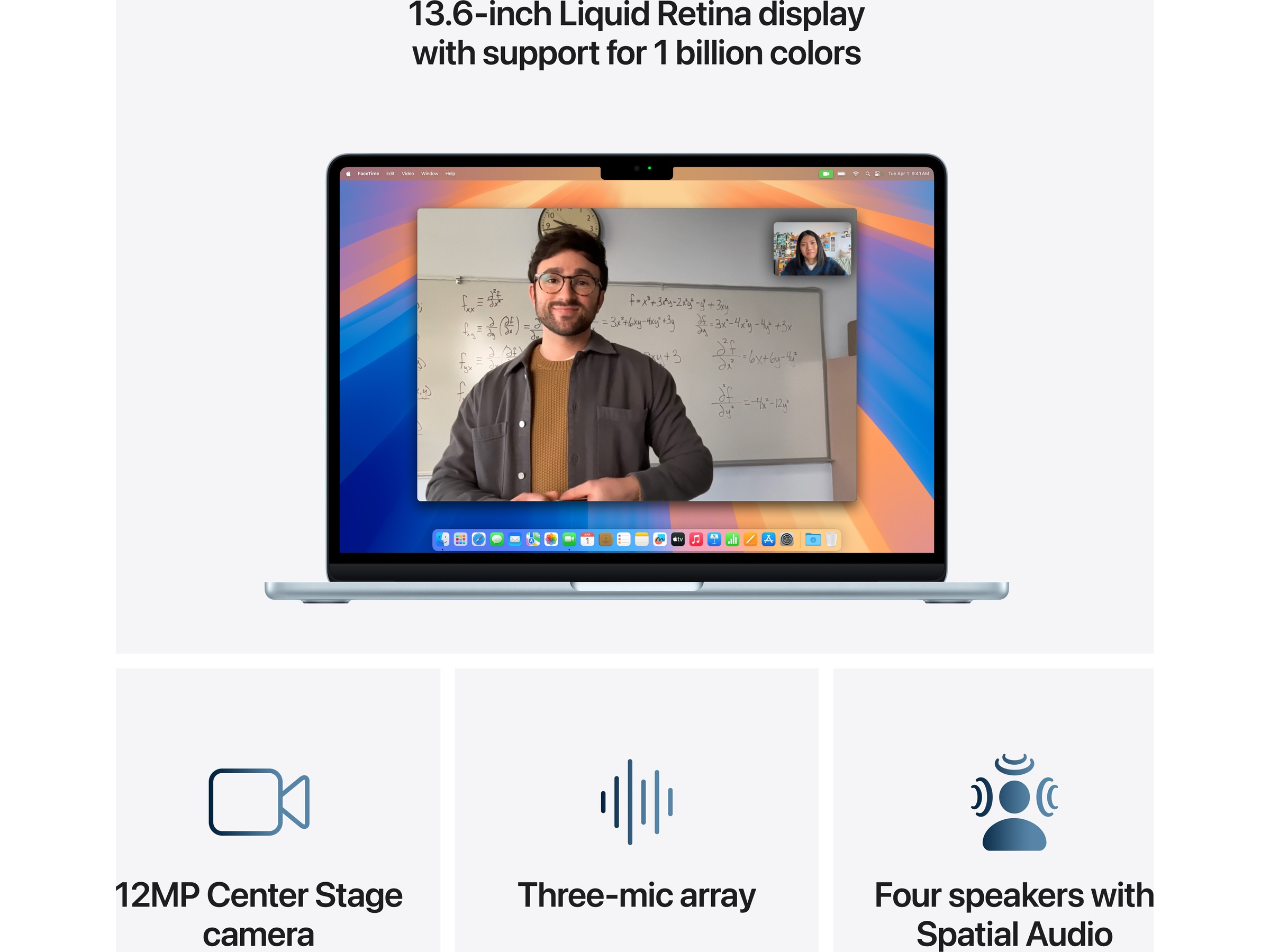 - DU SYNS OCH HÖRS BÄTTRE – Allt ser bra ut och låter fantastiskt med en 12MP Center Stage-kamera, tre mikrofoner och fyra högtalare med rumsligt ljud.