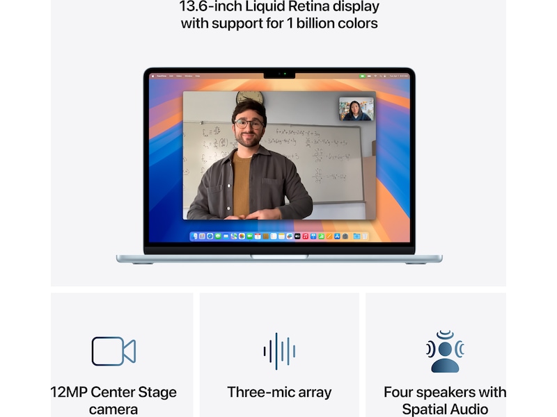 - KRISTALLKLAR SKÄRM – Liquid Retina-skärmen på 13,6 tum har stöd för en miljard färger.(2) Bilder och videor sticker ut med hög kontrast och tydliga detaljer, och text blir superskarp.