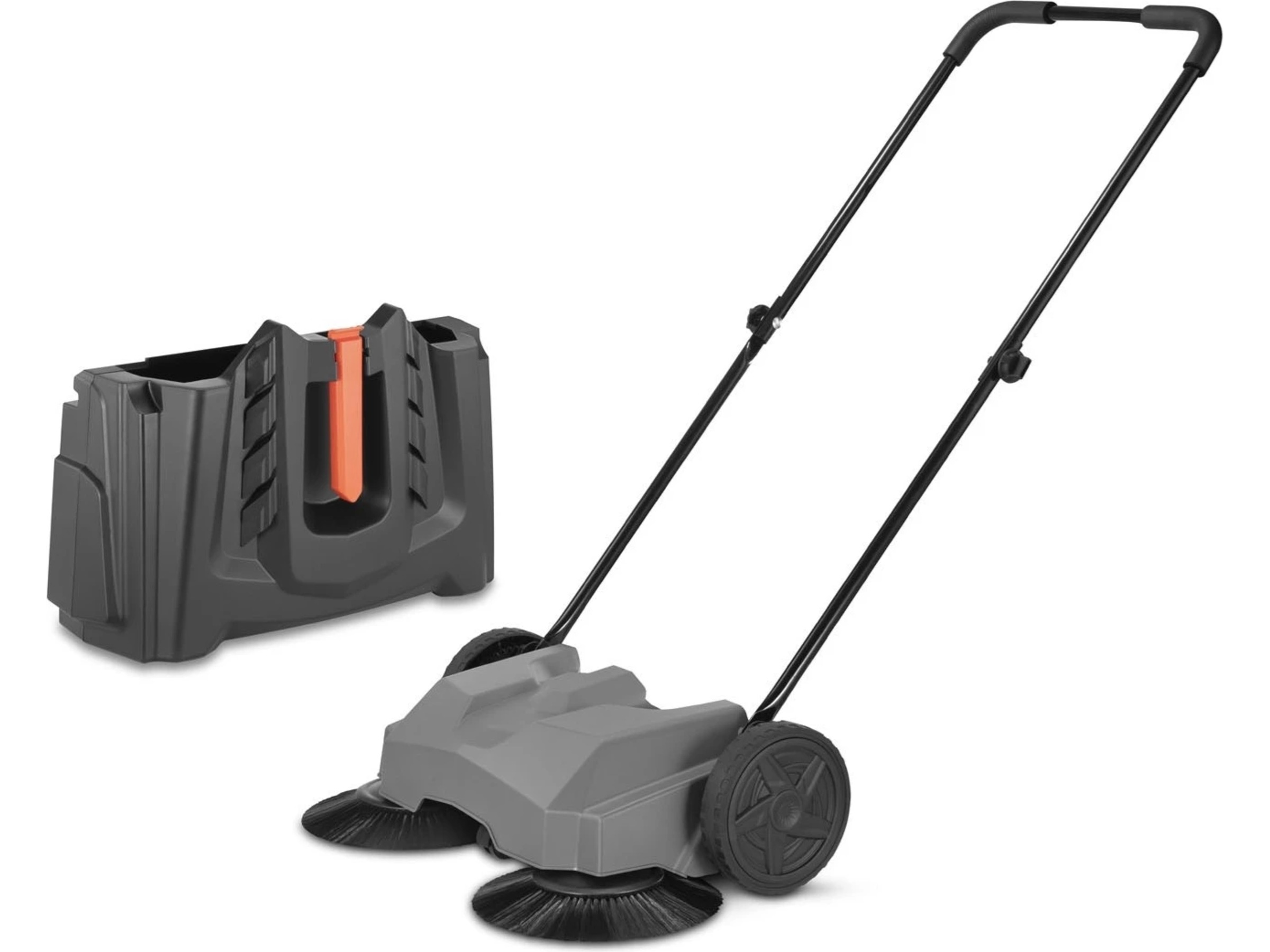 Maskinen är helt handdriven och kräver varken el eller batterier. Det ergonomiska handtaget ger ett bekvämt grepp och enkel manövrering, även vid längre användning. En flexibel och smidig rengöringslösning.
