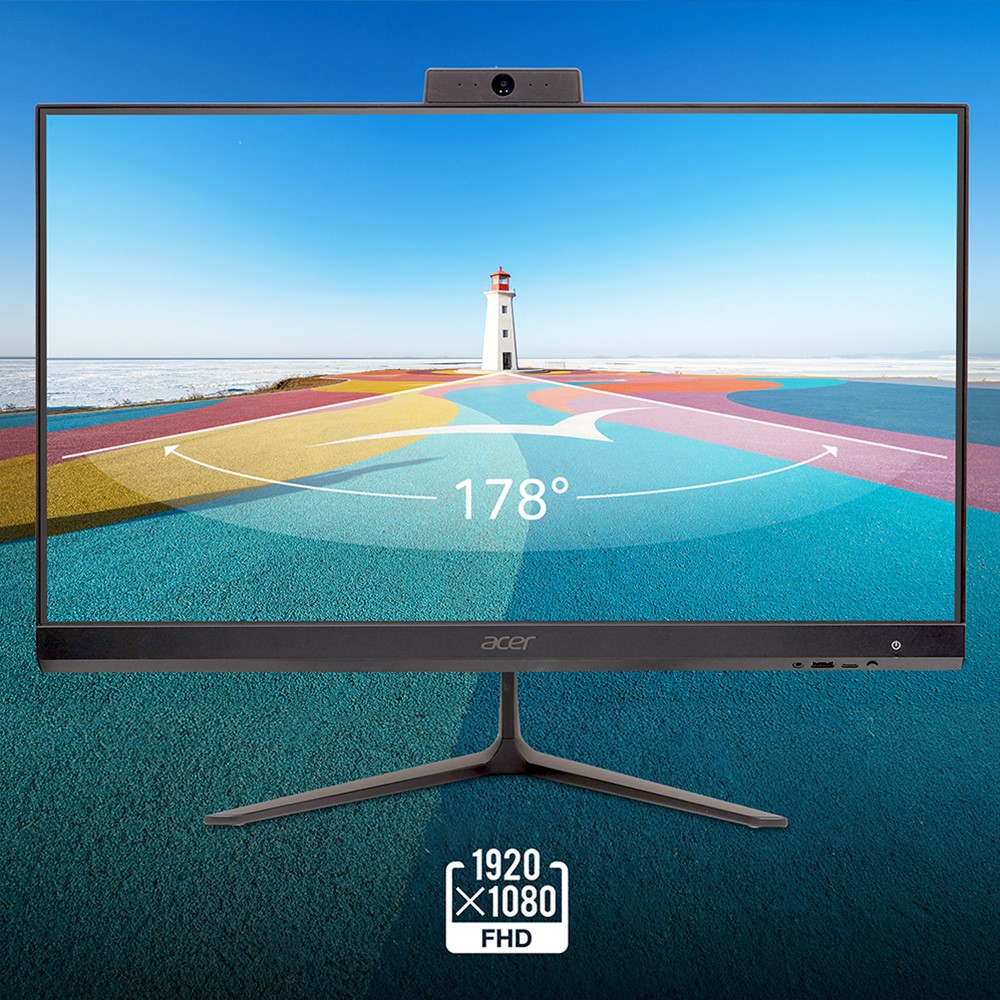 Aspire C24 allt-i-ett har en 23,8" 1920 x 1080 FHD-skärm med 120 Hz uppdateringsfrekvens, som erbjuder breda betraktningsvinklar på 178° och flimmerfri teknik för minskat skärmflimmer.