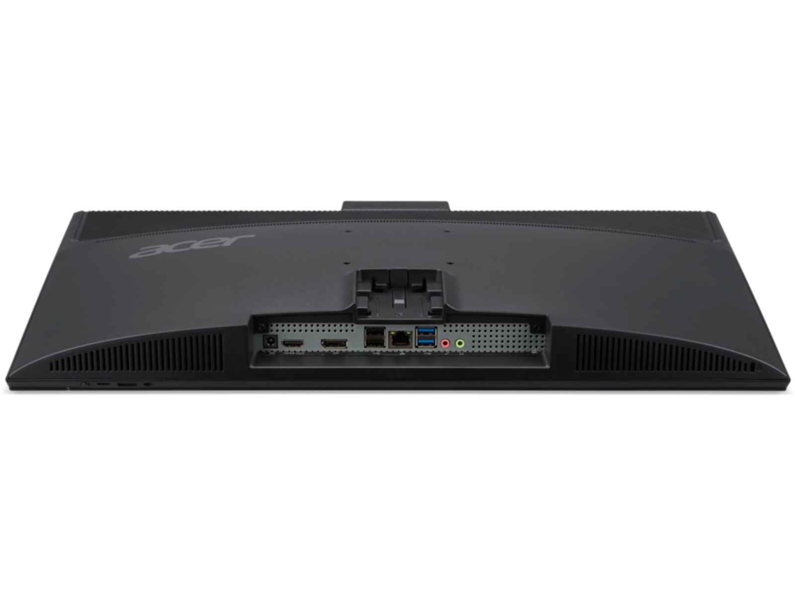 Effektivisera din arbetsyta med lättåtkomliga I/O-portar på framsidan så att du kan ansluta kringutrustning, ladda enheter och komma åt ljudingångar utan att behöva sträcka dig bakom skärmen.