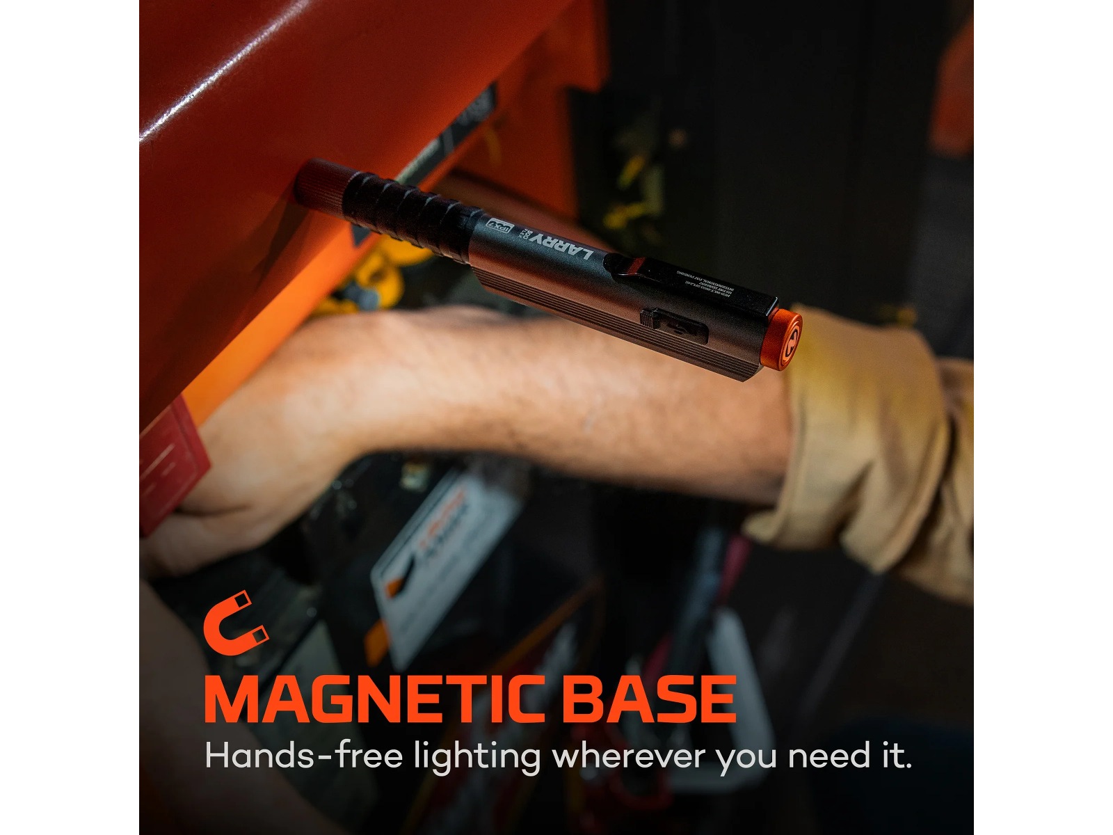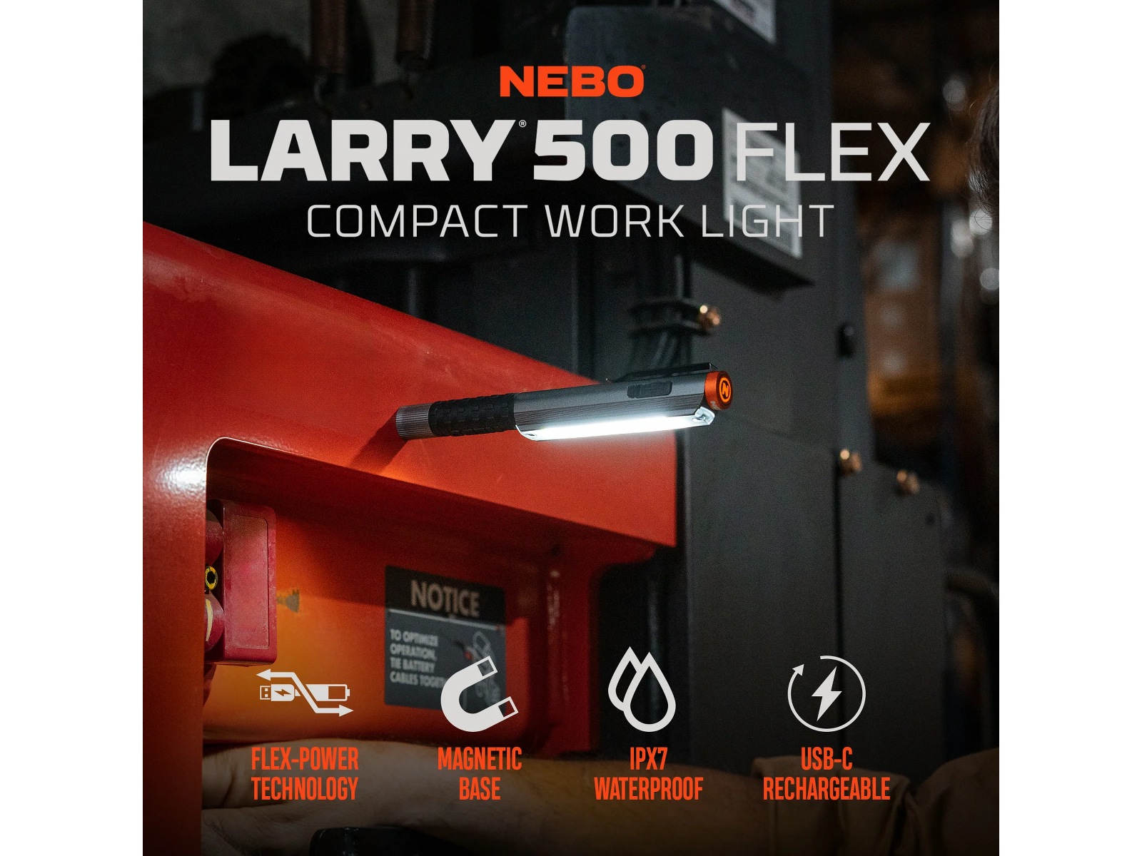 Larry 500 FLEX är en kompakt, 500-lumen arbetslampa som använder Flex-Power Technology, vilket gör det möjligt för lampan att drivas med ett inkluderat 10850 uppladdningsbart batteri eller med 2 AAA-batterier. Utrustad med stålfickklämma och en kraftfull magnetisk bas för smidig handsfree-belysning.