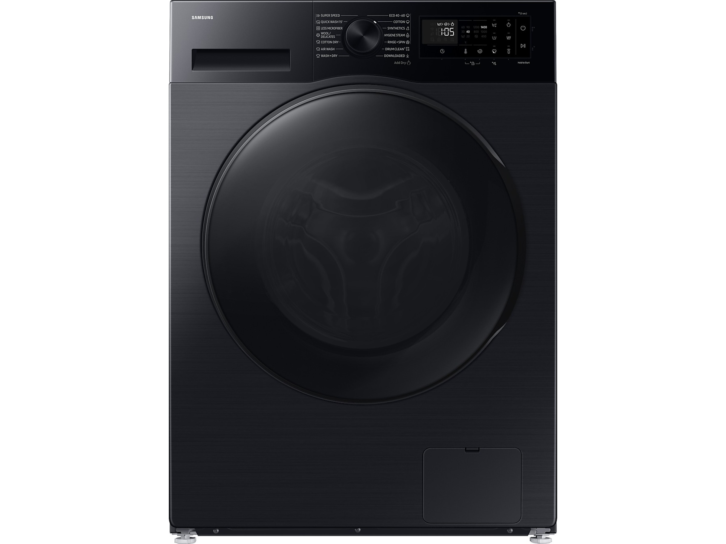 | Specialprogram och alternativ | Fördisk, ånghygien, Bubbelblötläggning, Tvätta och torka, Syntet, Bomull, Extra sköljning, Ull/ömtåliga plagg, Snabb 15, Superhastighet, Eco 40-60, ånga, Pausa och lägg till alternativ, Hoppa över centrifugering, Intensivdisk, Sköljpaus, Mindre mikrofiber, Snabbtvätt, Sköljning + centrifugering, Nedladdat tvättprogram, Drum Clean+ |