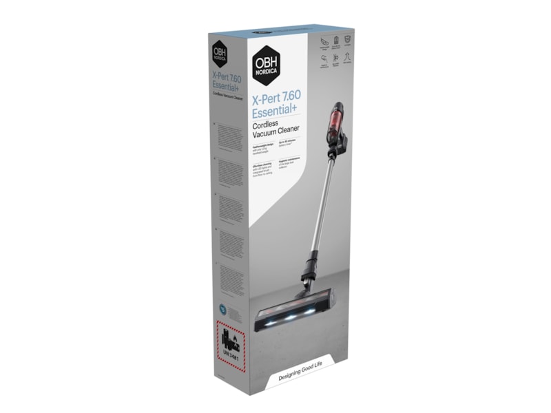 X-pert 7.60 Essential+ från OBH Nordica är en sladdlös skaftdammsugare som är designad för att ge perfekt balans mellan komfort och prestanda. Denna skaftdammsugare levereras med en mini-turboborste för att suga upp djurhår. Den har LED-lampor som visar dolt damm och djurhår som annars skulle vara osynligt. Med en handhållen vikt på bara 1,2 kg kan du dammsuga från golv till tak. Ljudnivån på 81 dB gör det också bekvämt för öronen att städa.