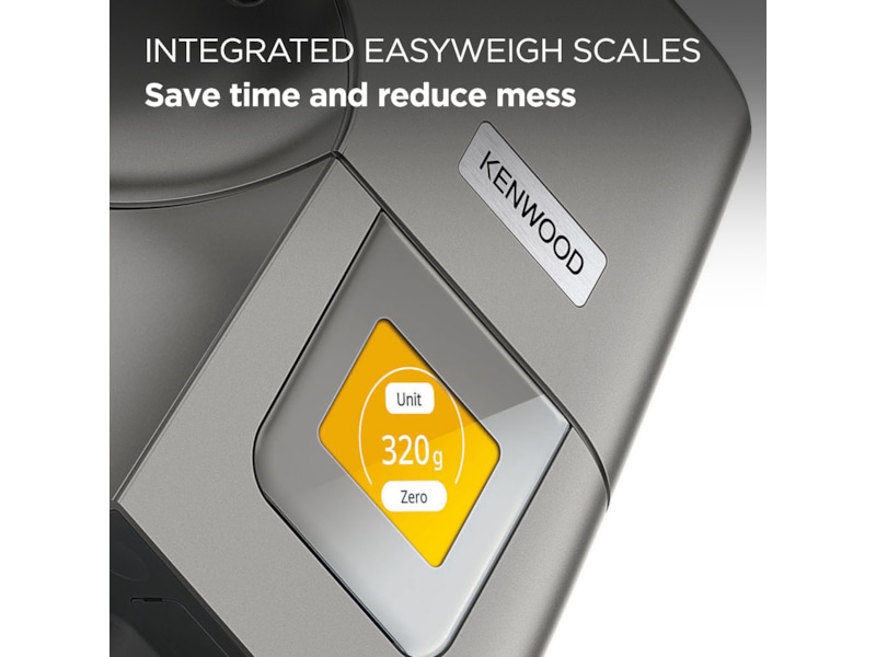 - Inbyggda vågar (EasyWeigh™) – väg ingredienser direkt i skålen eller tillbehören, med tara-funktion.