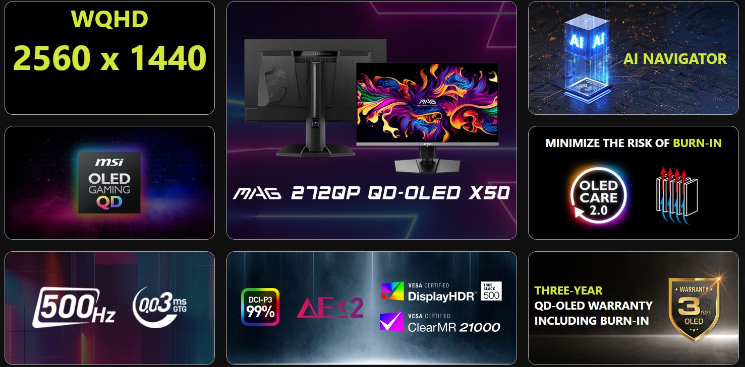 MSI 27" gamingmonitor MAG 272QP QD-OLED X50