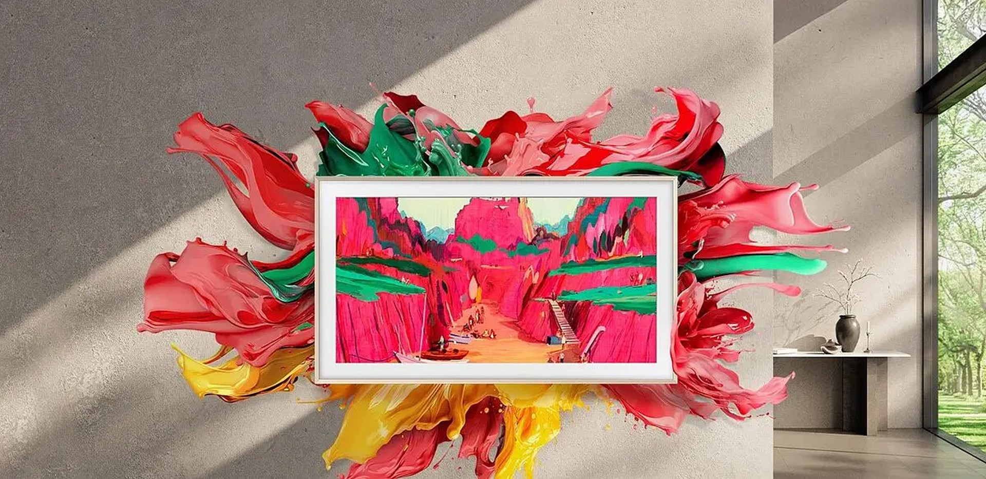 The Frame Pro kan monteras med en slank profil, så att den framstår nästan infälld i väggen och ger intryck av en riktig målning.