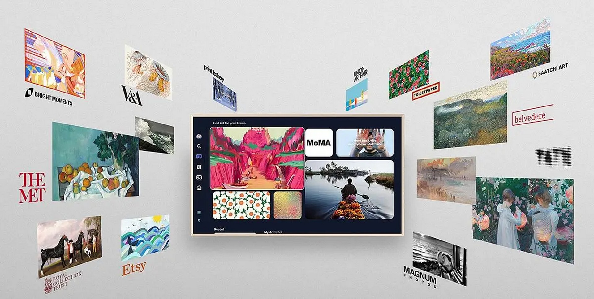 När TV:n är av förvandlas The Frame Pro till ett konstgalleri istället för en sort skärm. Utforska Samsung Art Stores breda utbud av konstverk från välkända gallerier. Över 370 gratis konstverk ingår, och urvalet uppdateras varje år.