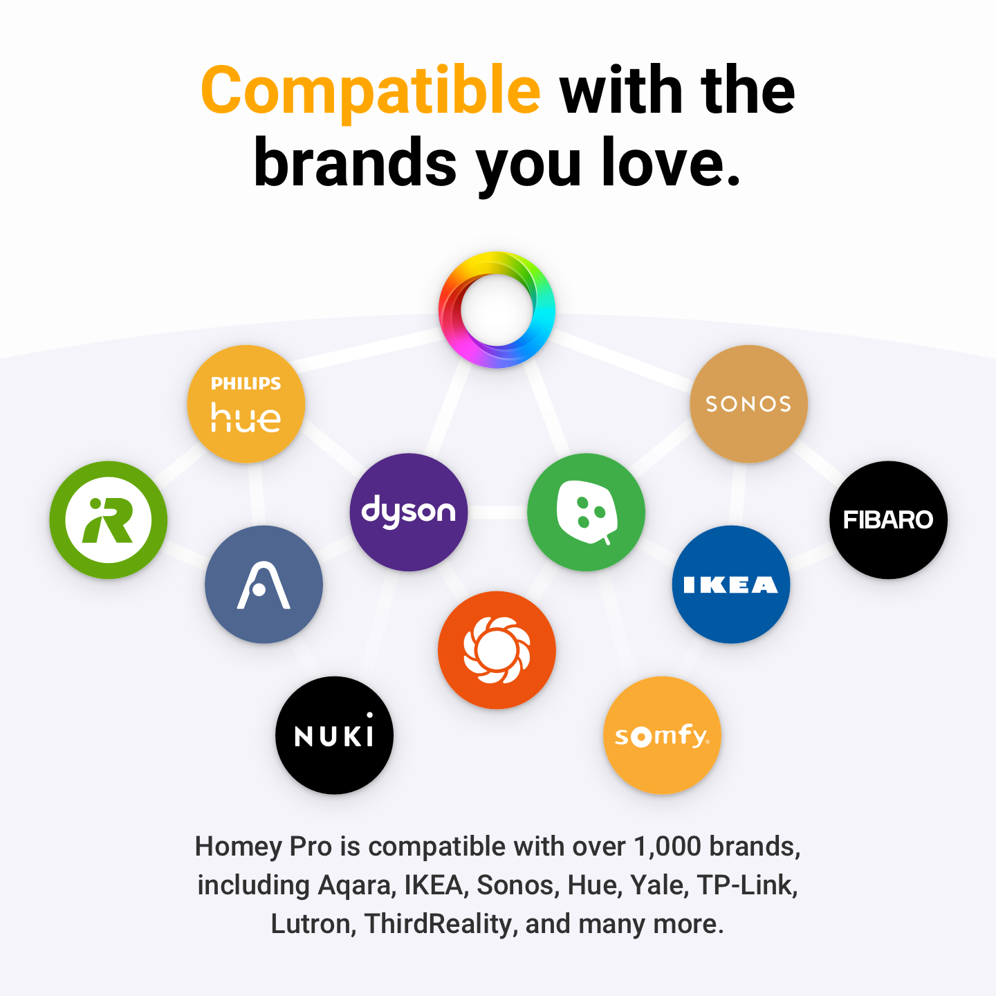 Homey Pro arbetar helt lokalt, vilket säkerställer minimal fördröjning och maximal tillförlitlighet, och använder molntjänster endast när det behövs.