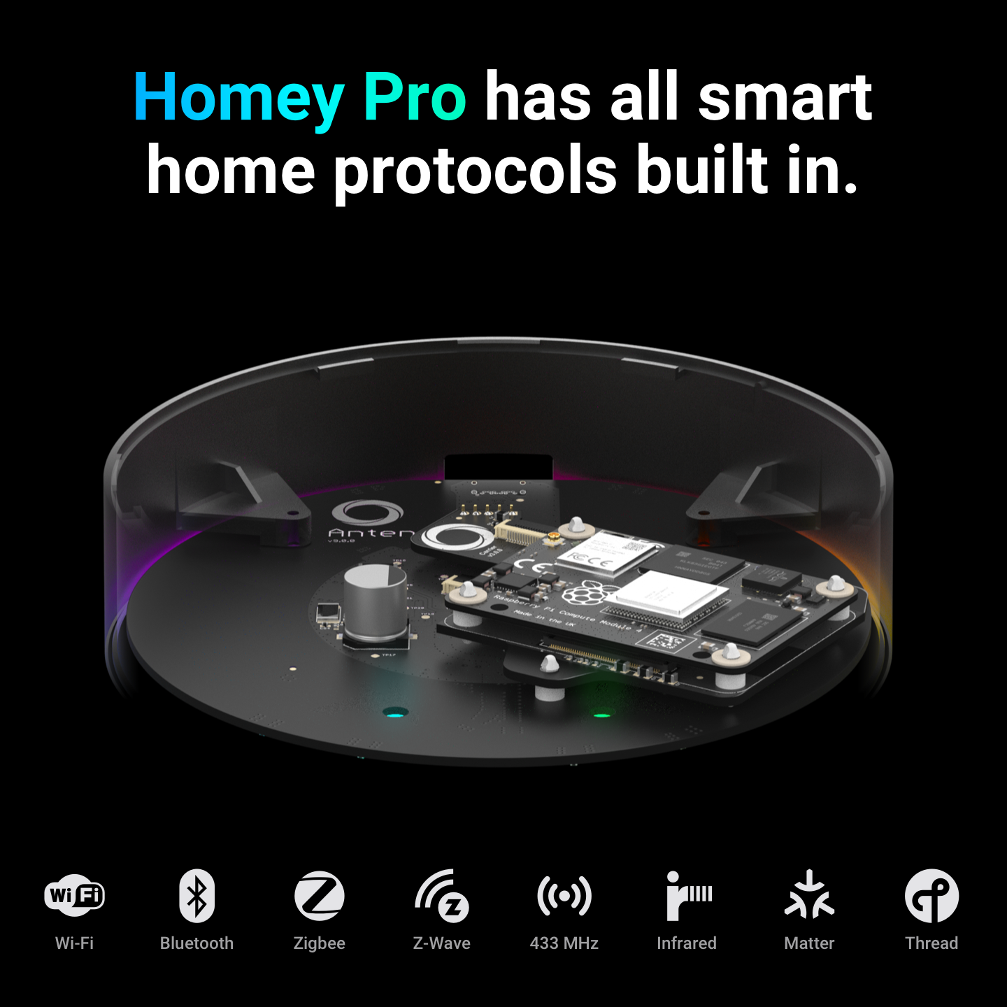 Avancerad teknik, överlägsen prestanda. Helt nya Homey Pro representerar höjdpunkten inom innovation för smarta hem-hubbar och levererar funktioner som överträffar branschstandarden.