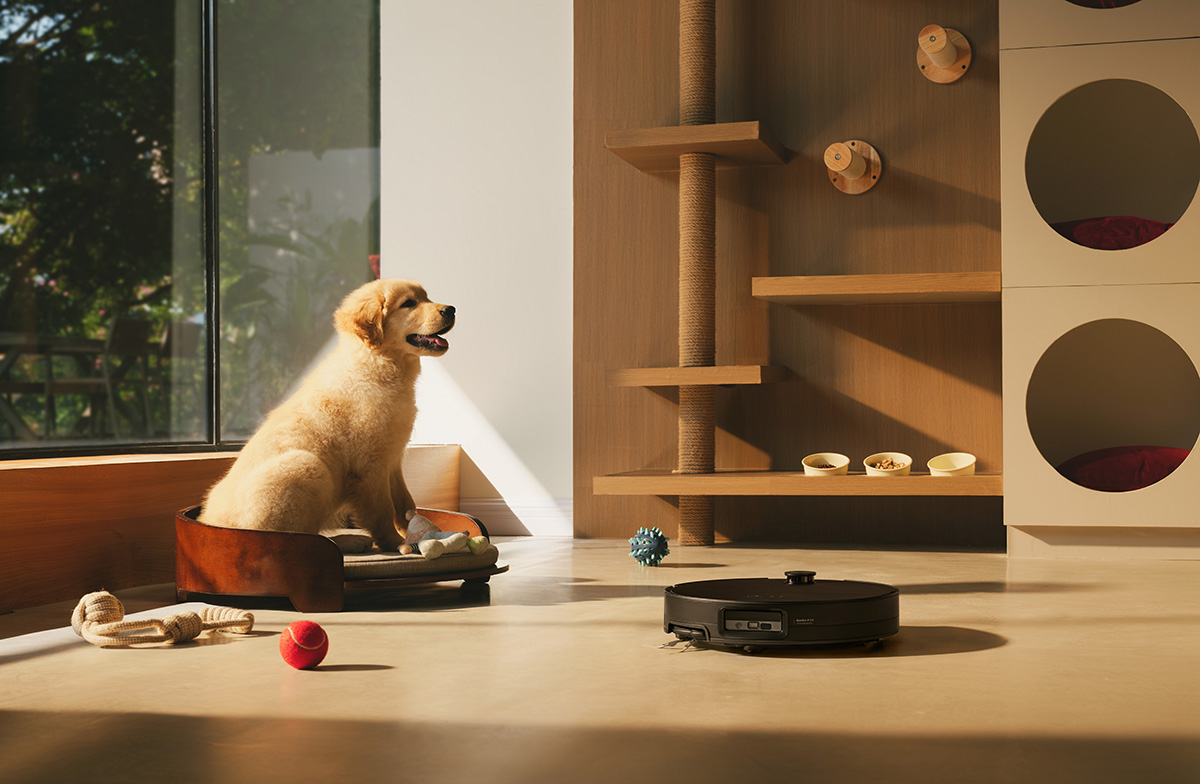 Robotten känner automatiskt igen husdjur och pausar huvudborsten för att undvika att skrämma dem. Den kan även ta bilder, visa deras position på kartan och möjliggöra videosamtal i realtid, så att du kan hålla koll på både hemmet och dina husdjur.