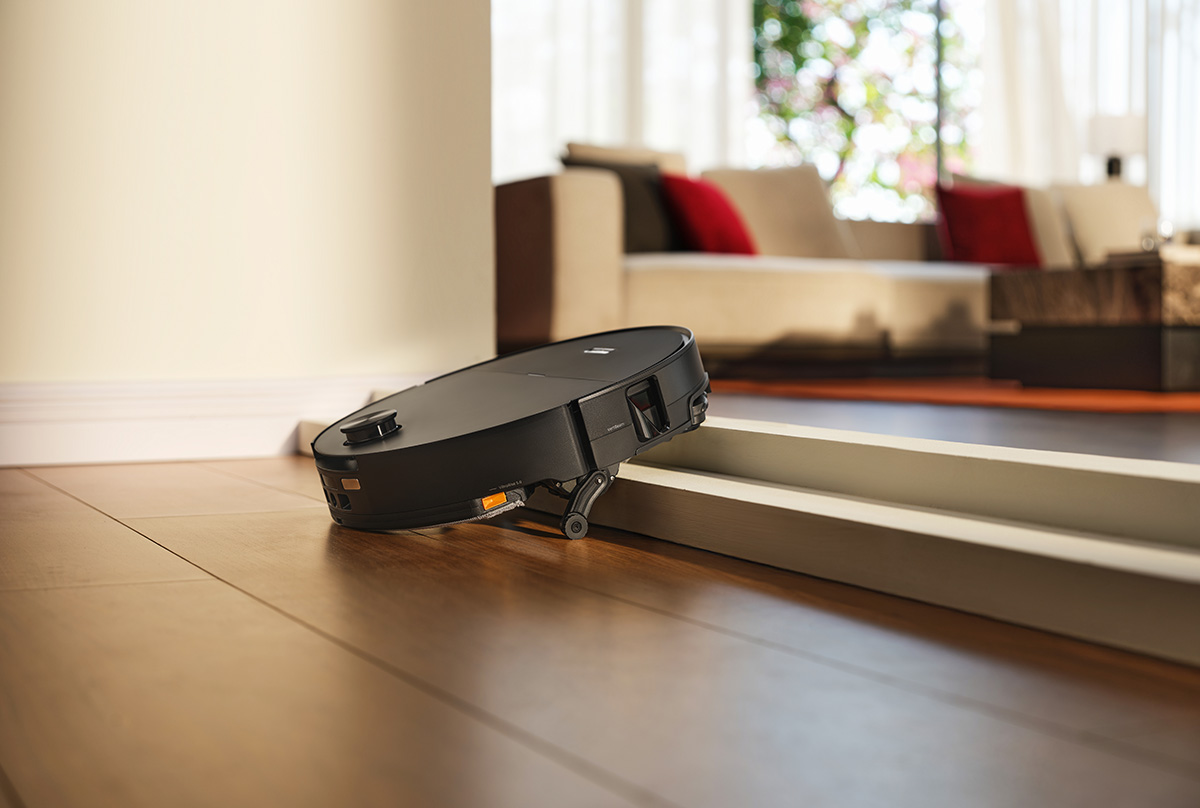 Med en rengöringshöjd på endast 7,95 cm och en indragbar LDS når Saros 20 Sonic under soffor, sängar och annan låg möblering. Systemet anpassar sensorerna: i öppna ytor hålls de upphöjda för 360°-kartläggning, medan de under möbler dras in för säker navigering. Övre kontaktsensorer förhindrar stötar och repor, och LDS-mekanismen är testad genom över 10 000 upp- och indragningar.