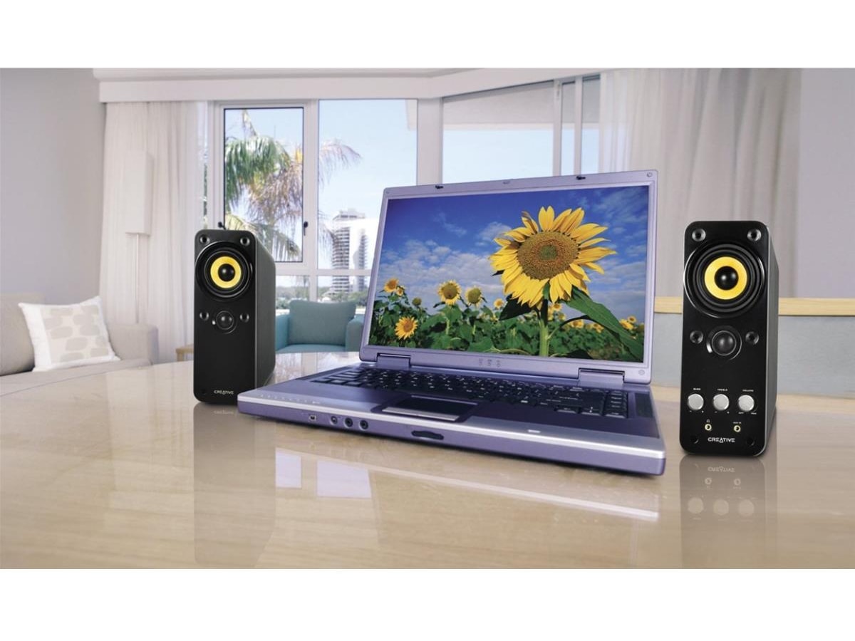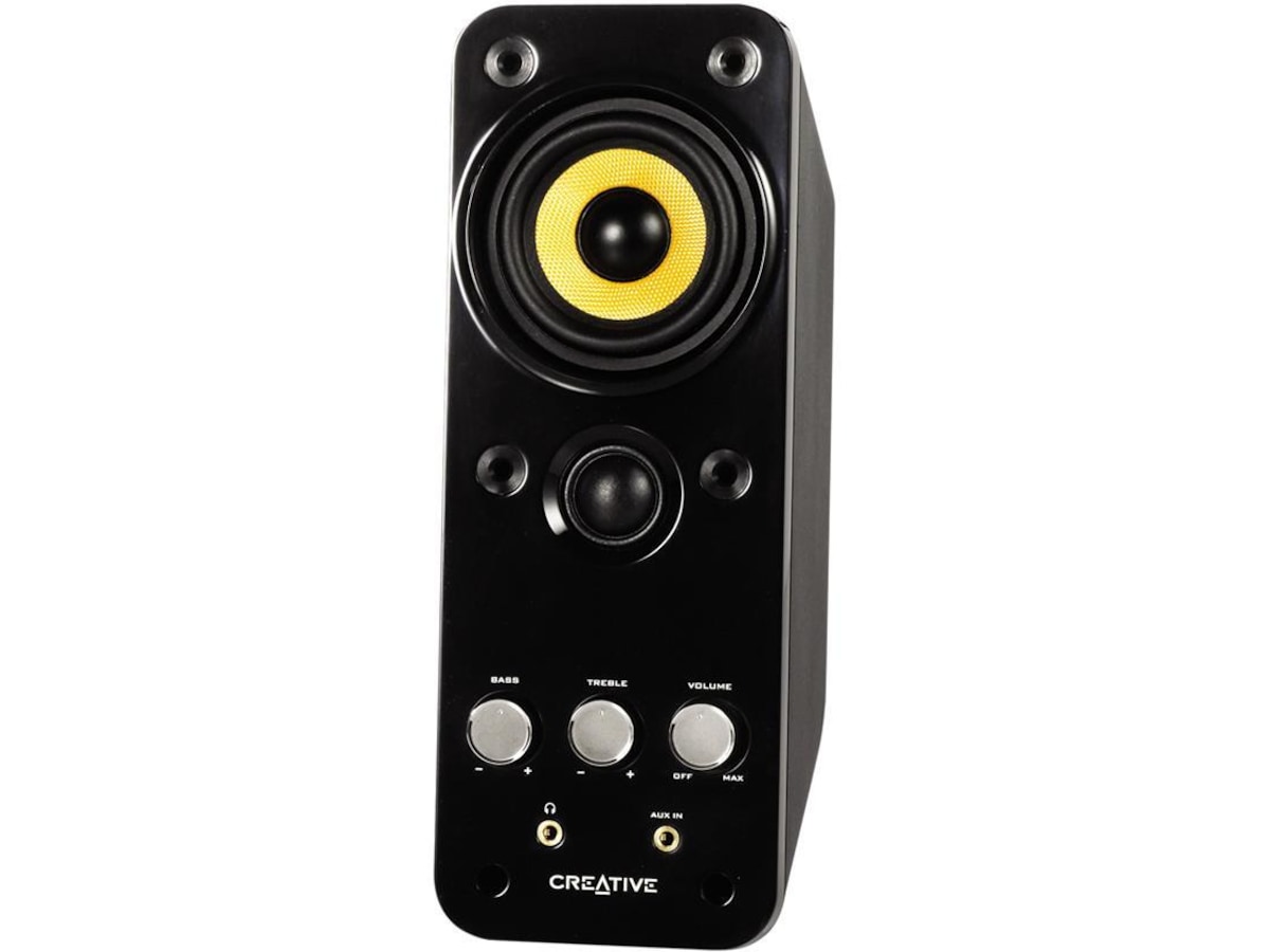 Creative tar högtalardesign ett steg längre med GigaWorks T20 Series II. Detta tvådelade system är baserat på sin prisbelönta föregångare och dess glättade svart färg, noggranna design och akustiska egenskaper formar ett ljudpaket med modern utformning och fantastisk kvalitet. GigaWorks T20 Series II tar din musik till den höga nivå den förjänar. Woofer-drivenheter av högsta kvalitet och tweeters med hög frekvens ger ett perfekt balanserat ljud som ackompanjeras av Creatives BasXPort™-teknik för effektfull bas utan någon subwoofer. Det finns två ingångar så att du samtidigt kan ansluta en dator och en MP3-spelare utan att växla kablar.