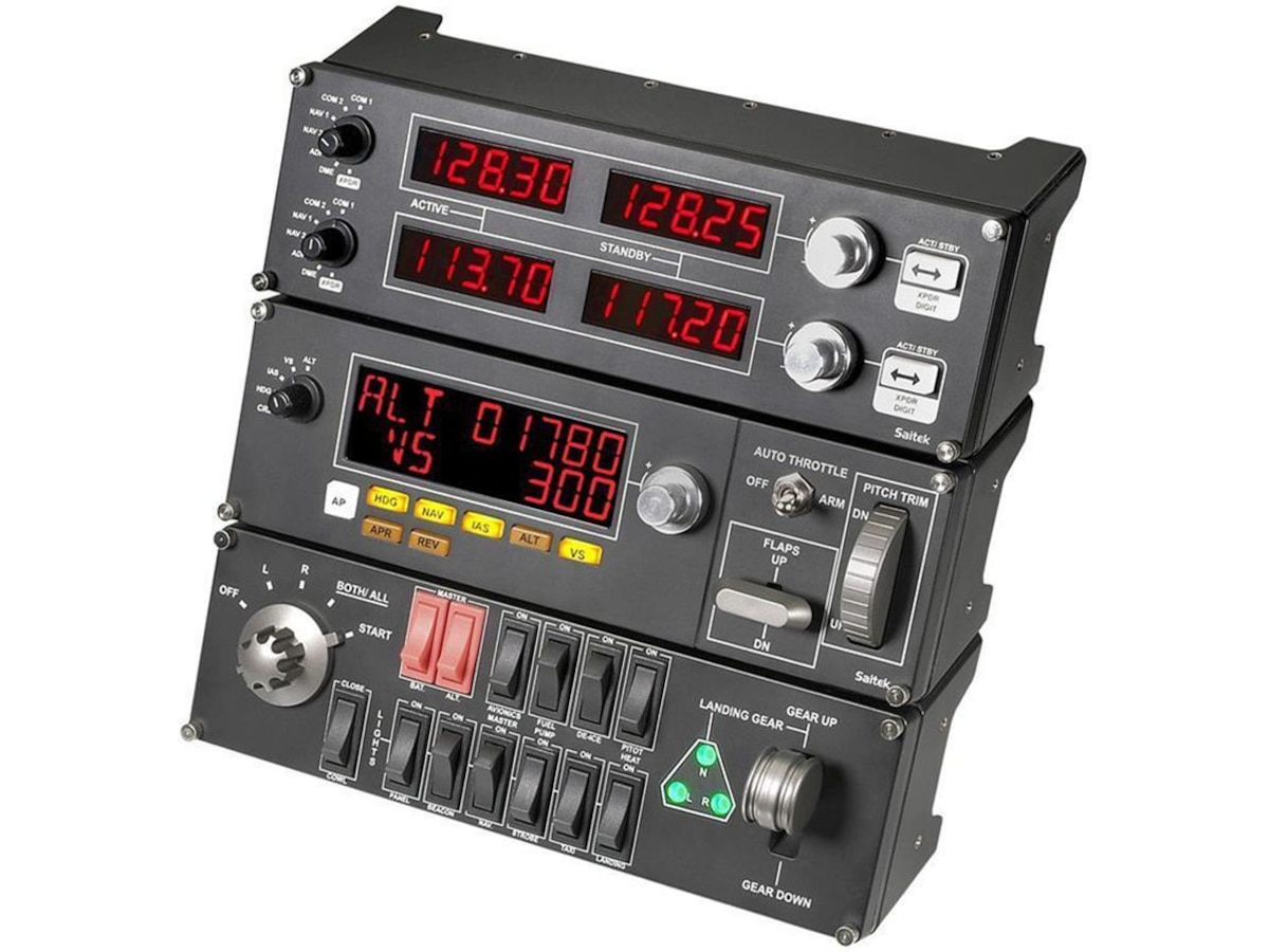 Logitech G Pro Flight radiopanel är en bunt med fyra LED-displayer med styrenheter för att du ska kunna installera en mängd kommunikations- eller navigeringsfunktioner. Varje display fungerar i realtid med FSX, X-Plane, och Prepar3D.